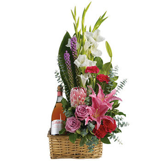 Go all out for your special someone with this opulently awesome array of lavish flowers and sparkling wine, hand arranged in a wicker basket. Nothing says I love you quite like a luxurious gift filled with beautiful blooms and a bottle of bubbly. Show your significant other how much they mean to you with this extravagant gift that will surely make them feel cherished and adored.